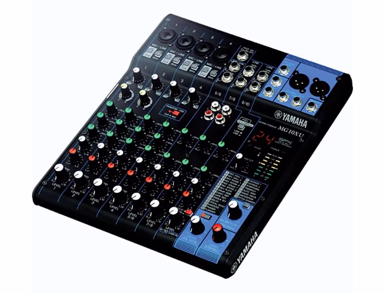 The MG10XU from Yamaha is a compact ten-input mixer with built-in effects for performances, lectures, recordings and similar applications. The mixer features four mic/line combo inputs with D-PRE mic preamps as well as six 1/4″ line inputs with stereo level controls. It also features USB connectivity and is capable of providing two channels in and two